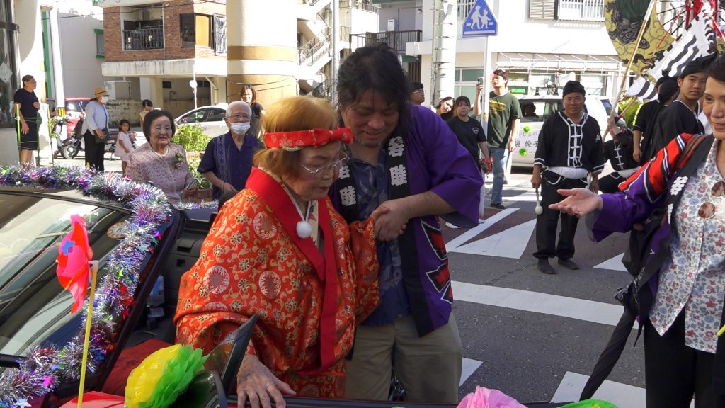 今年97歳を迎えられたのは、島袋俊子さん。地域の皆さんをはじめ、通りを歩いていた県外の方々も足を止めて声をかけ、島袋さんの長寿を祝福していました。